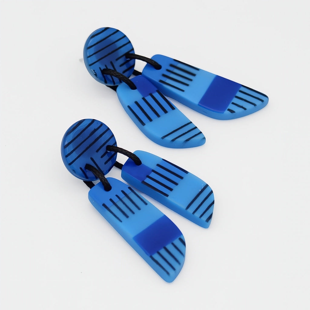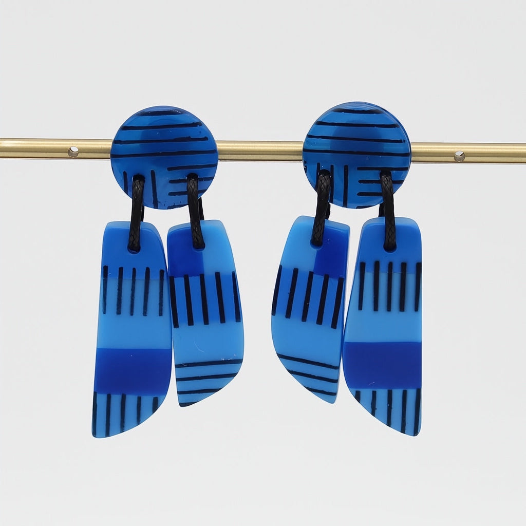 Perfect for adding a splash of color and a touch of artistic flair to your ensemble, these hand-painted resin earrings are versatile enough to complement both casual and formal looks. The blue hues mixed with a dynamic pattern add a cheerful and playful touch to any outfit. Hung on a post, you can easily wear these earrings alone or with a coordinating necklace.