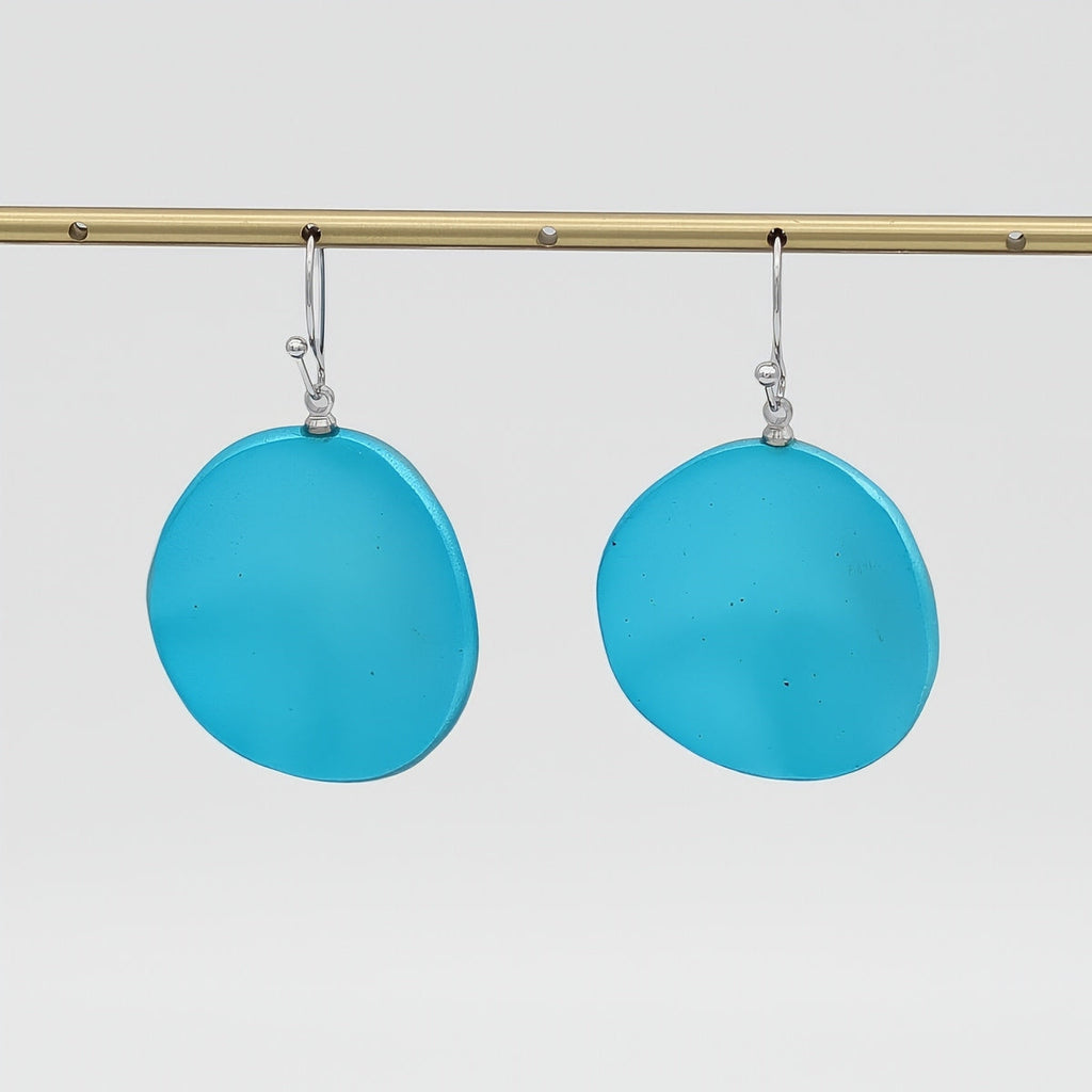 Indulge in luxury with our Blue Opaline Drift Earrings. Made with molded resin, these dangle earrings feature a disc style and vivid color that add a touch of sophistication to any outfit. Versatile and stylish, they are a must-have addition to your fashion collection.