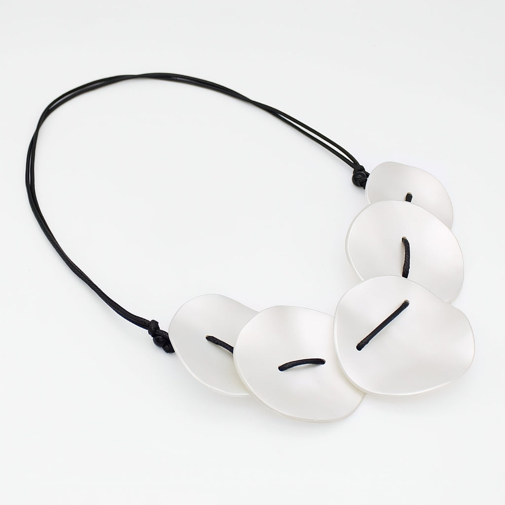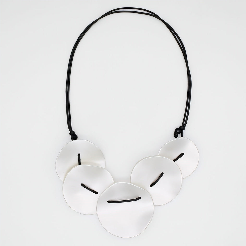 Graceful and enchanting, the Opaline Drift Statement Necklace is a stunning fusion of ethereal beauty and modern artistry. Featuring lustrous pearl-like resin beads that are strung on an adjustable black wax cord. Lightweight yet bold, this necklace is perfect for those who love timeless sophistication with a contemporary twist. Elevate any ensemble with the Opaline Drift, a true embodiment of luminous elegance and artistic expression.