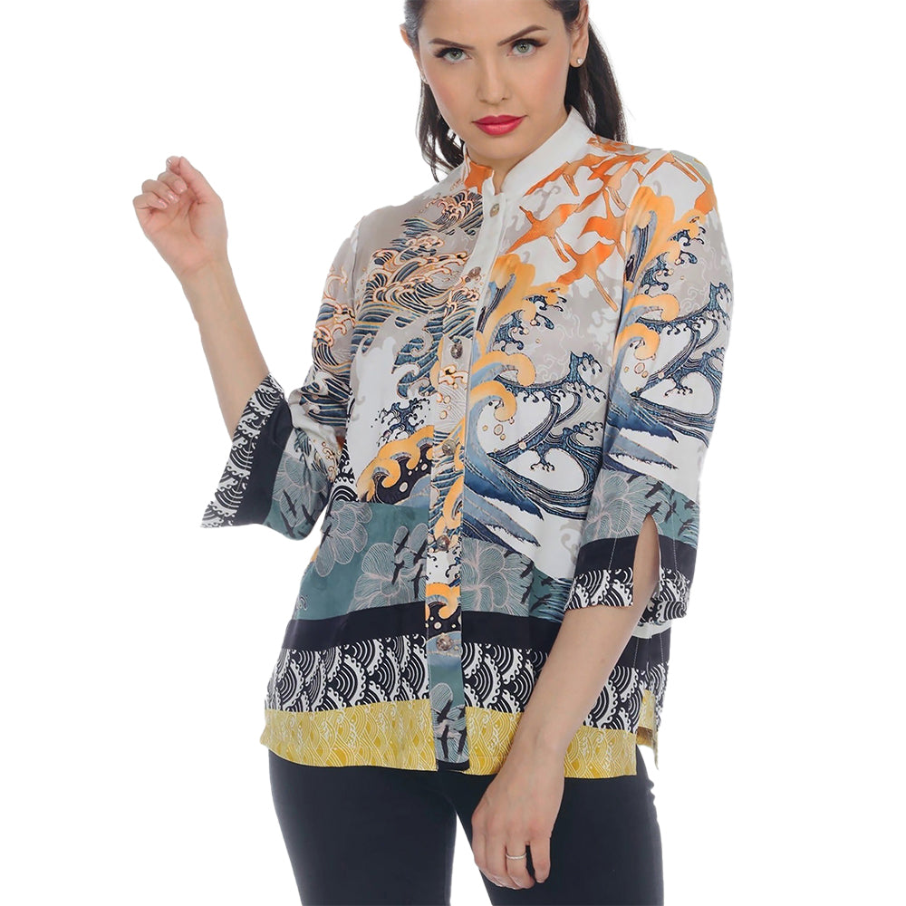 • Soaring Cranes-Print  Blouse