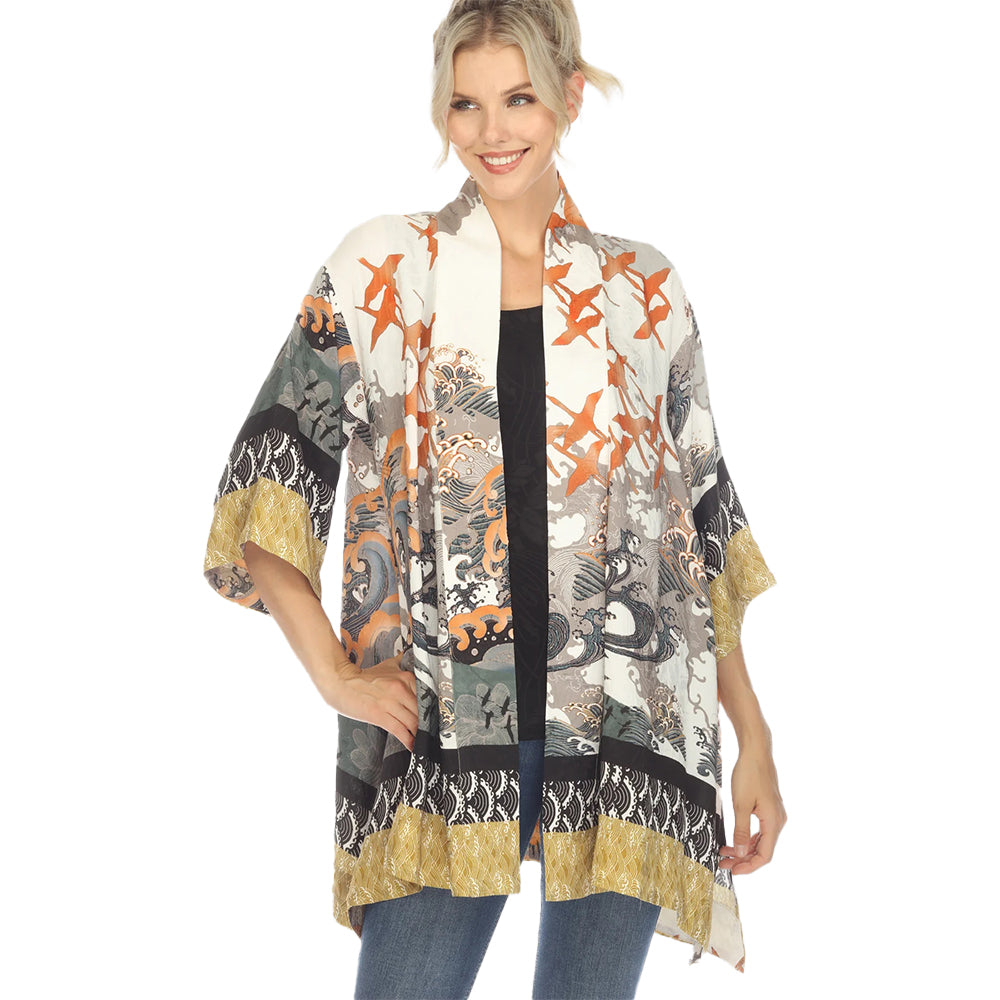 Seaside Cranes and Waves Print Flowing Jacket - 0917WAC