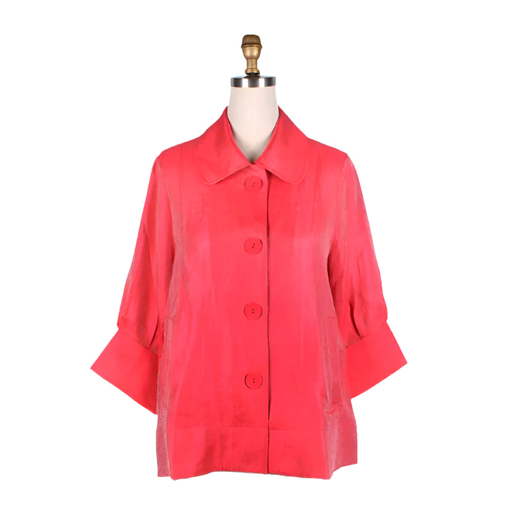 Solid Mid-Length Shimmery Jacket in Coral Red - 4741-CRD