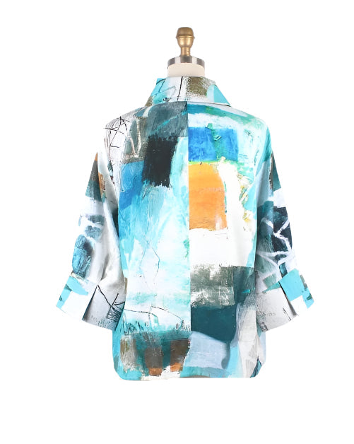 Absract-Print Button Front Jacket in Turq/Multi- 4877 - Sizes XS & XXL