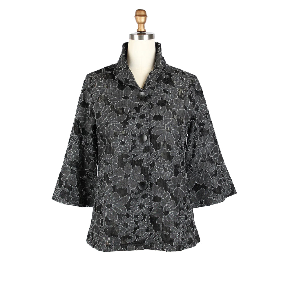 Floral Jacquard Bell Sleeve Jacket in Black - 2466-BLK