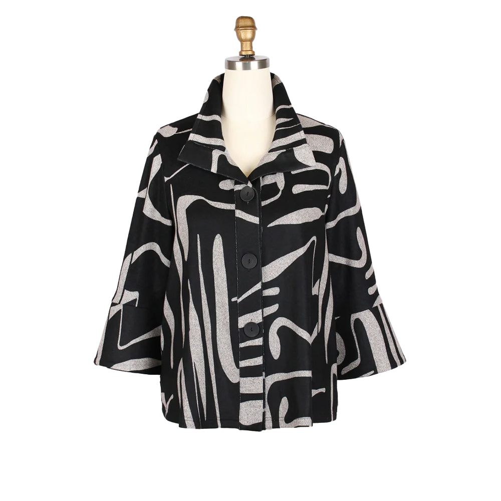 Abstract Flannel Jacket in Soft Grey on a Black Background - 4998