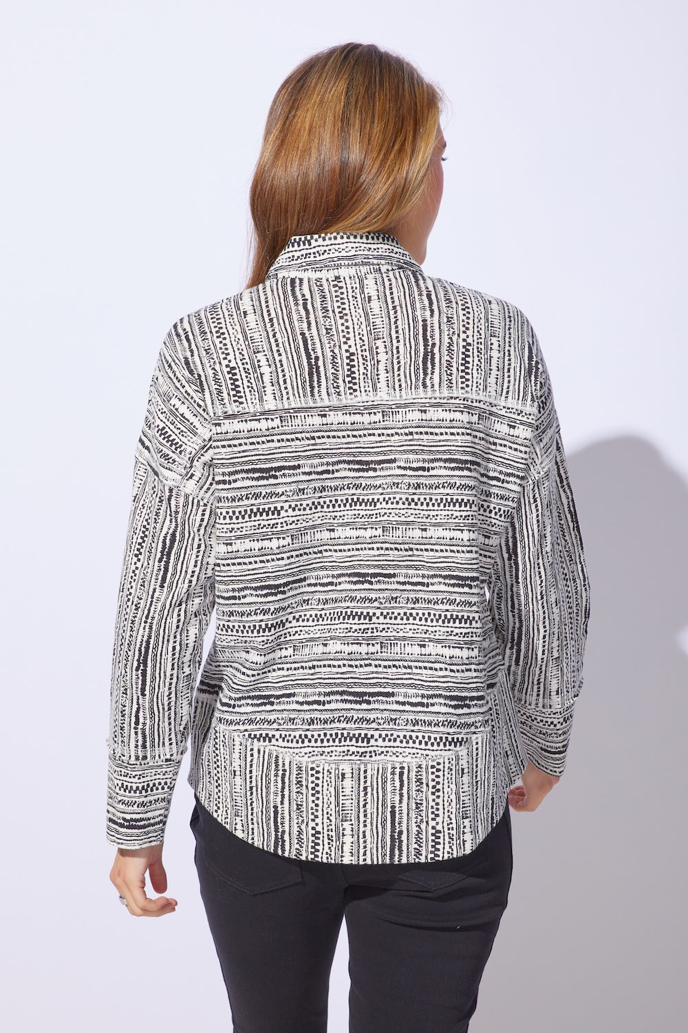 Fresh stripes bring modern charm to this cotton slub knit top, designed with effortless versatility in mind. A classic collared neckline and partial button front add timeless appeal, while coverstitch accents and a curved banded hemline complete the look. Casual comfort with style that carries through every season.