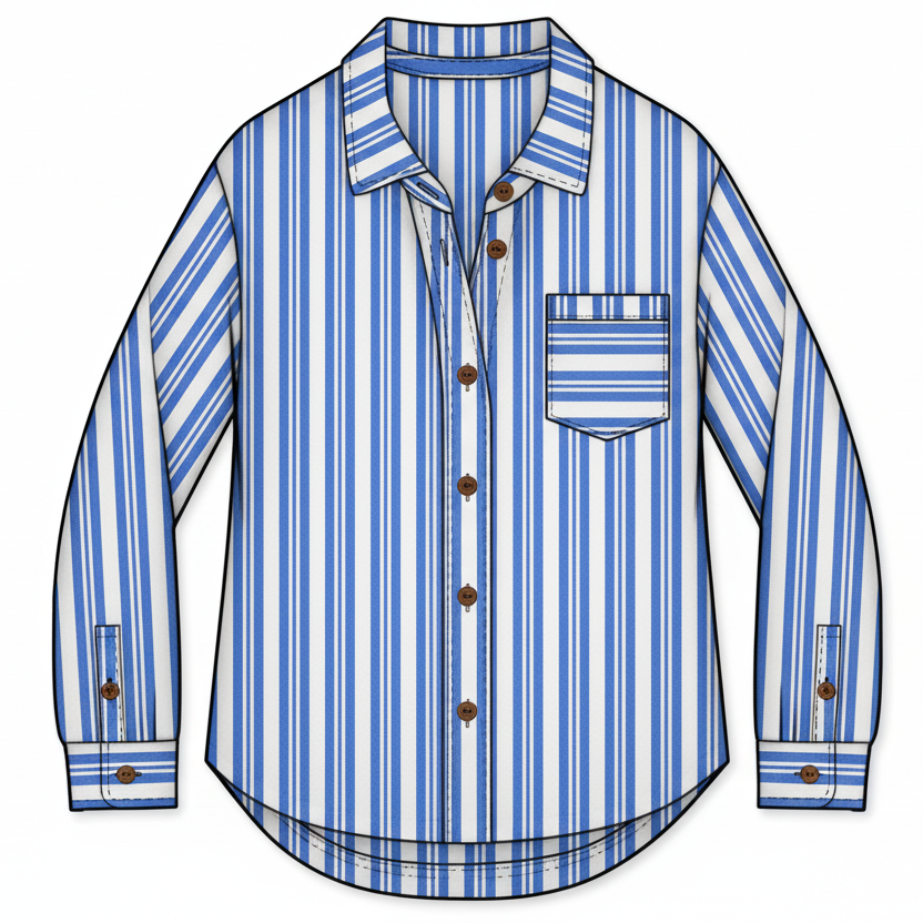 The Seaport Stripe Marina Shirt is a relaxed, coastal classic designed for effortless everyday wear with a polished finish. Styled with a classic collared neckline and a full button-front closure, this shirt delivers traditional shirt tailoring with a laid-back twist. Natural-look buttons add an understated, nautical-inspired detail.