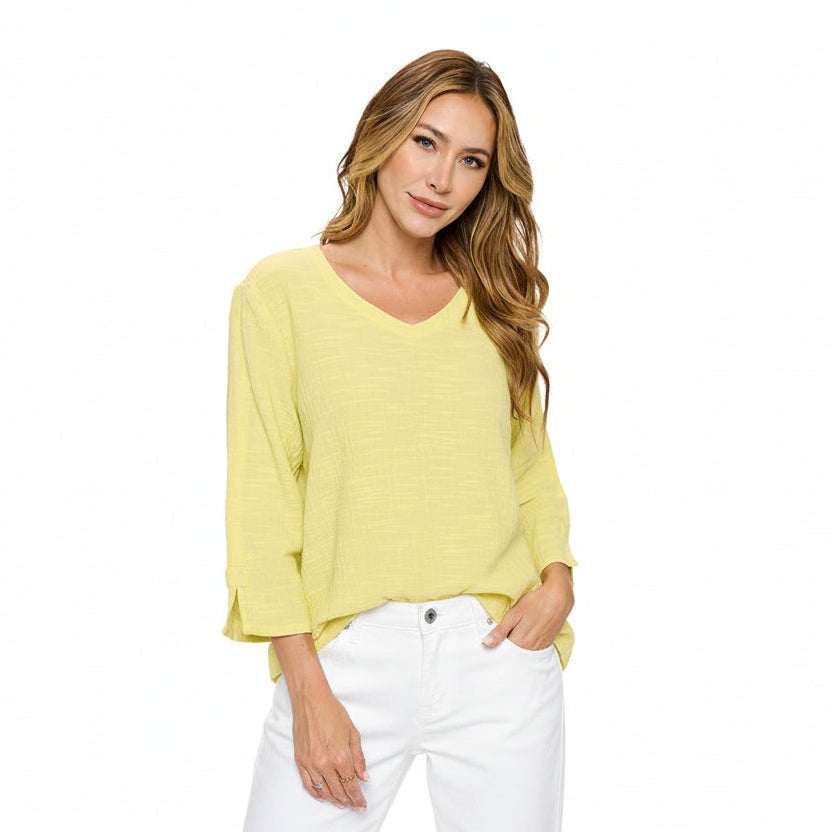 Textured V-Neck Cotton Top in Soft Lime - NS110-LM