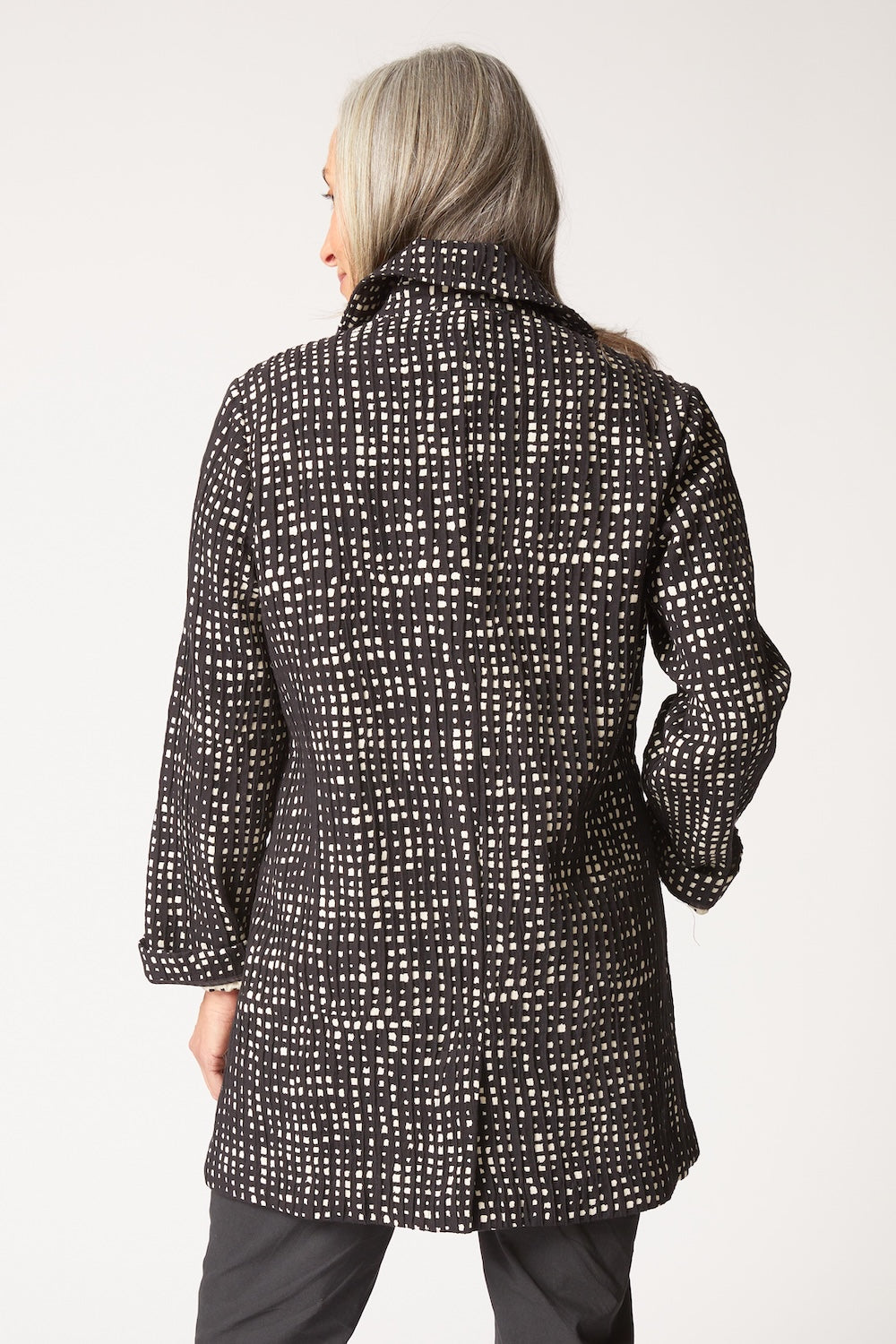 Autumn Check Collection, the Paris Car Coat features a shawl collar, full button-front, and on-seam side pockets.