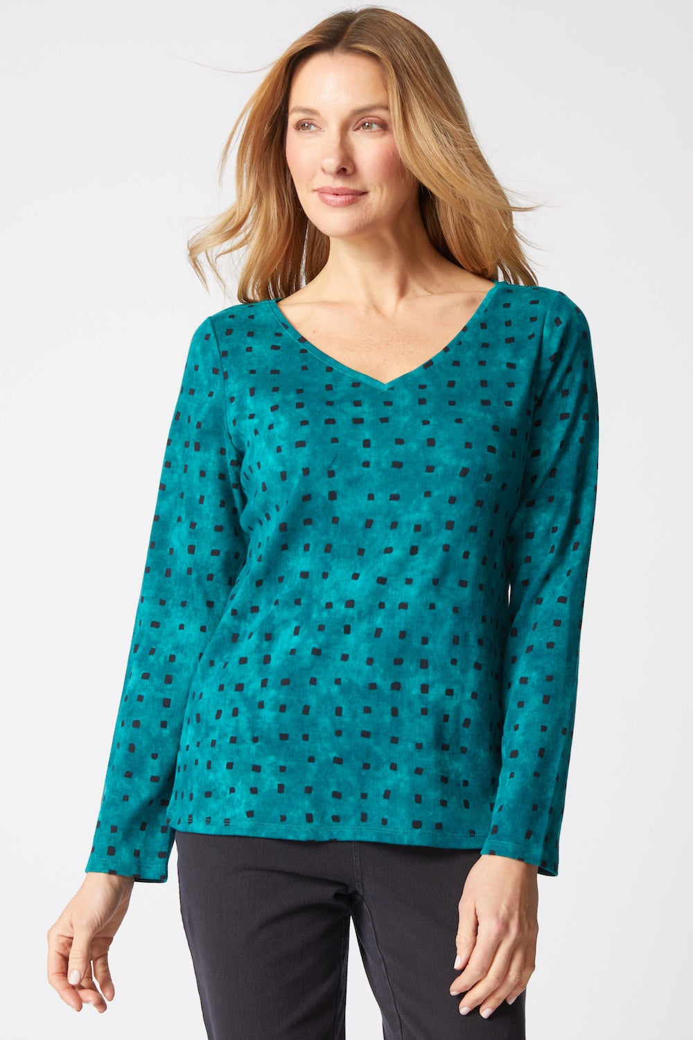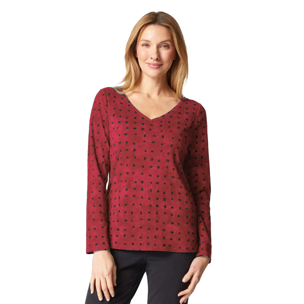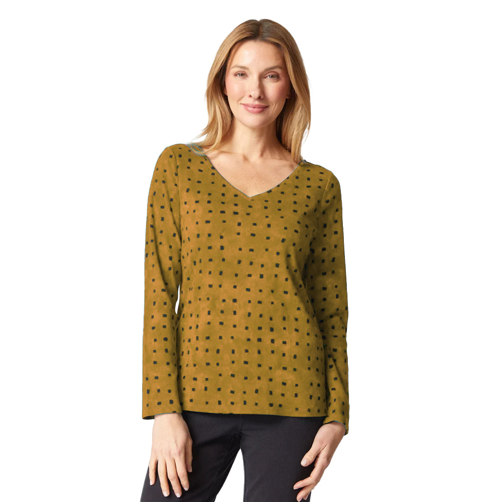 The Habitat Cozy Rib Tile Print Top combines softness with style, featuring a vibrant wash of color and subtle black accents. Its ribbed texture adds depth and movement, while the relaxed fit makes it an effortless choice for layering or wearing on its own. A versatile Habitat top designed to bring comfort and modern detail to your everyday wardrobe.