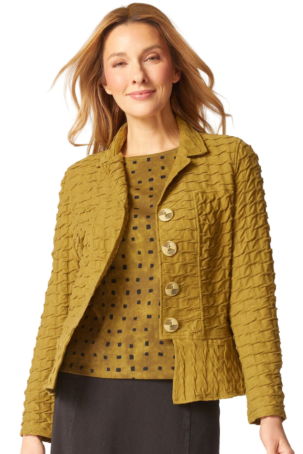 - Ribbed texture adds depth and movement