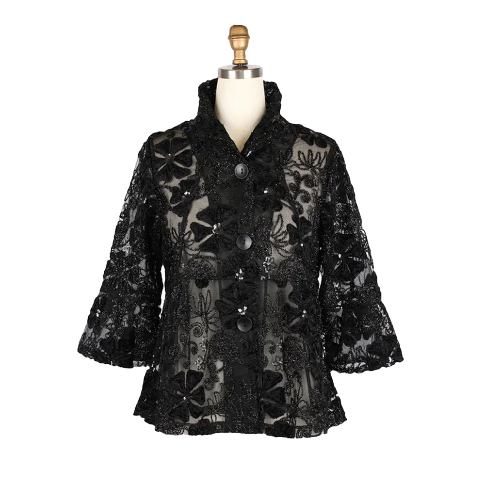 Embroidered Mesh Evening Jacket With Sequin - 2462-BLK