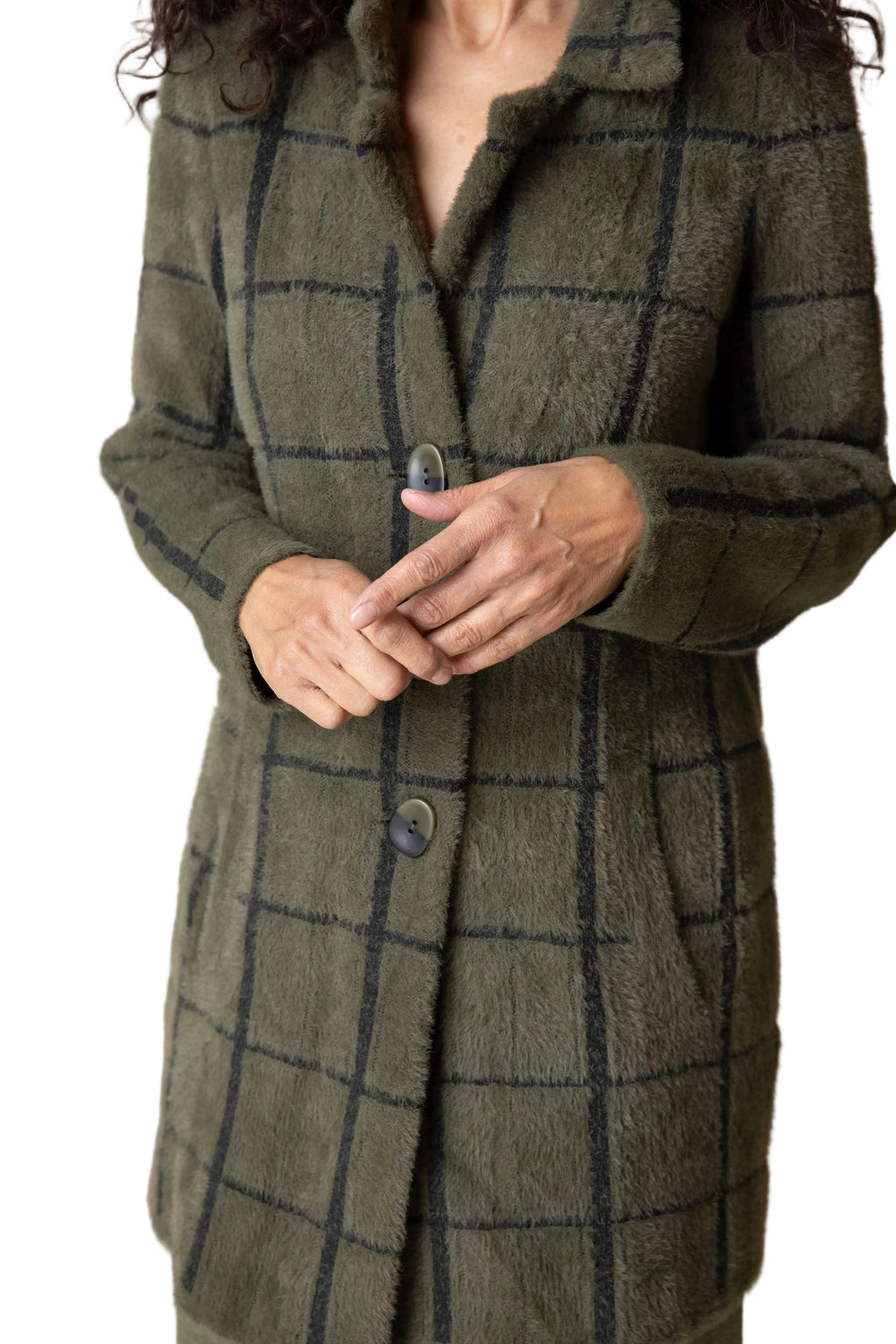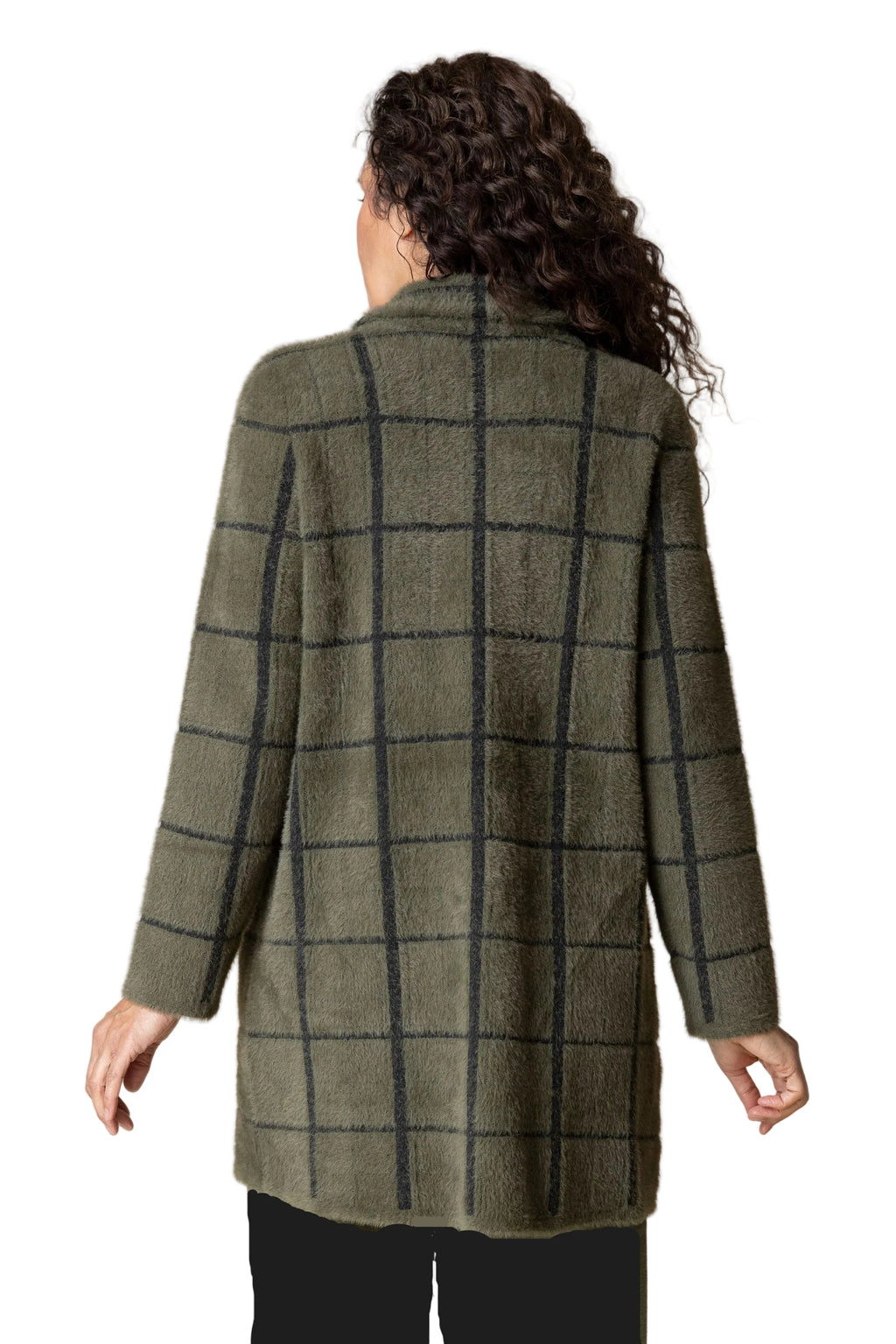 - Soft Knit Car Coat with Classic Windowpane Pattern