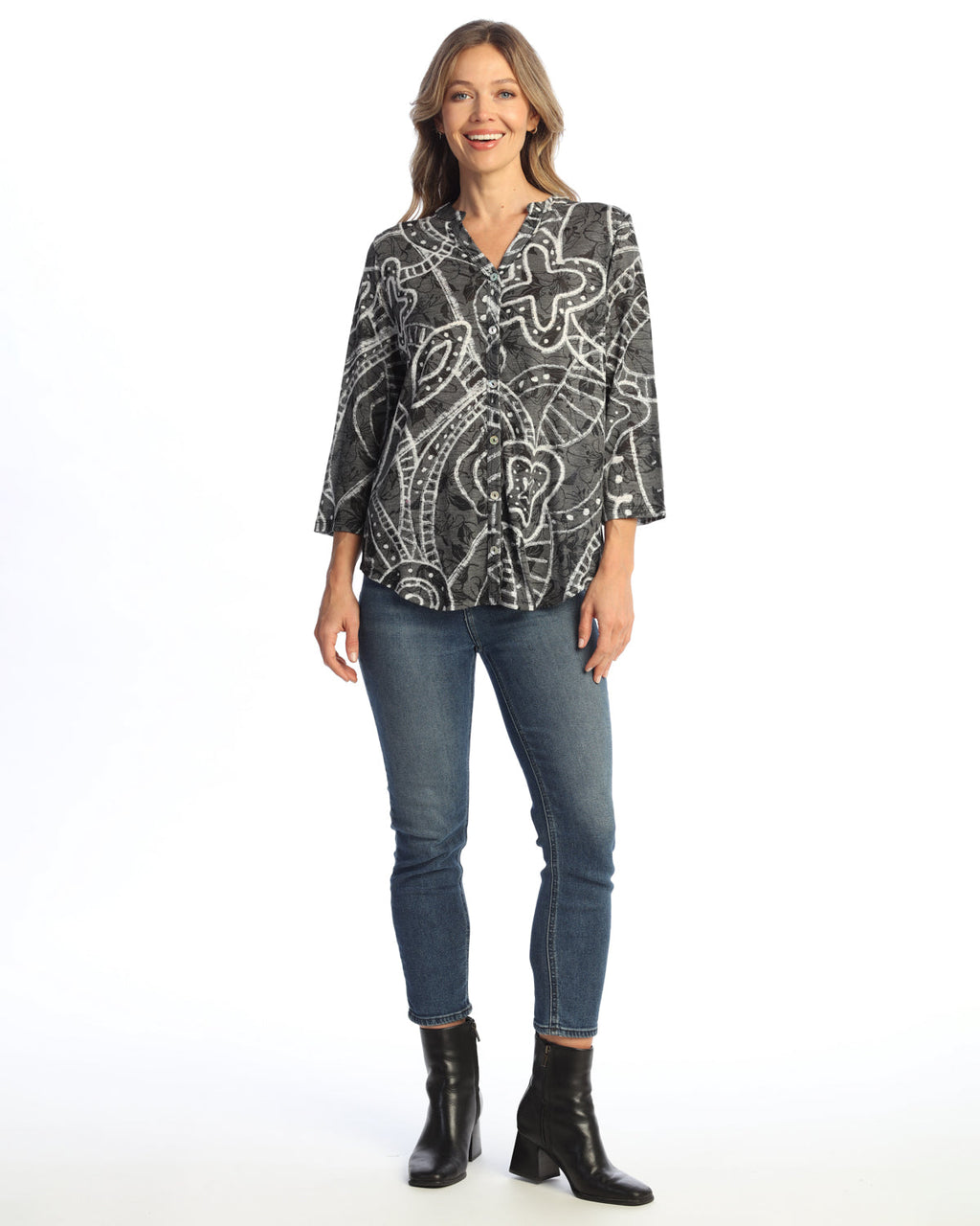 • Mandarin Collar; 3/4 Sleeves