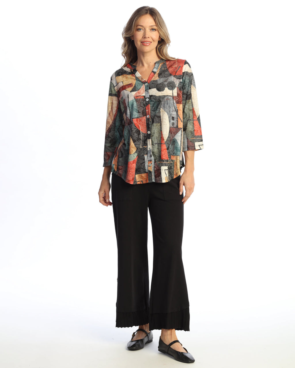 • Mandarin Collar; 3/4 Sleeves