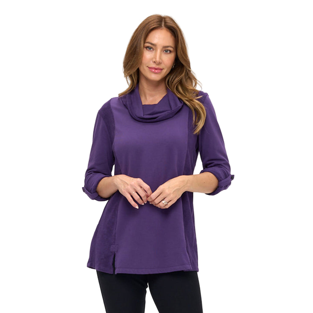 French Terry Side Contrast Tunic in Purple - TW102-PPL