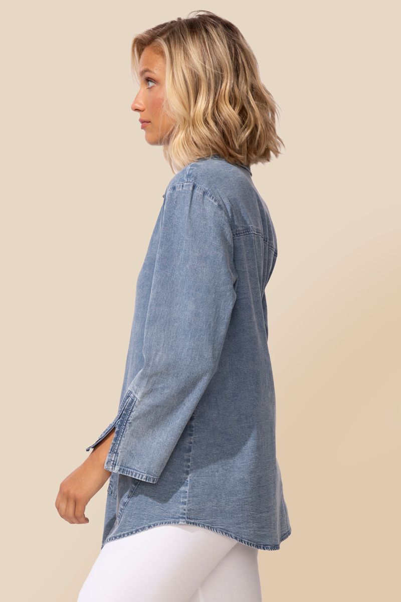 A light weight cotton/spandex perfect for shirting. Built in pockets, cuff sleeves with zipper slits to wear up or down. The shape you love season after season!