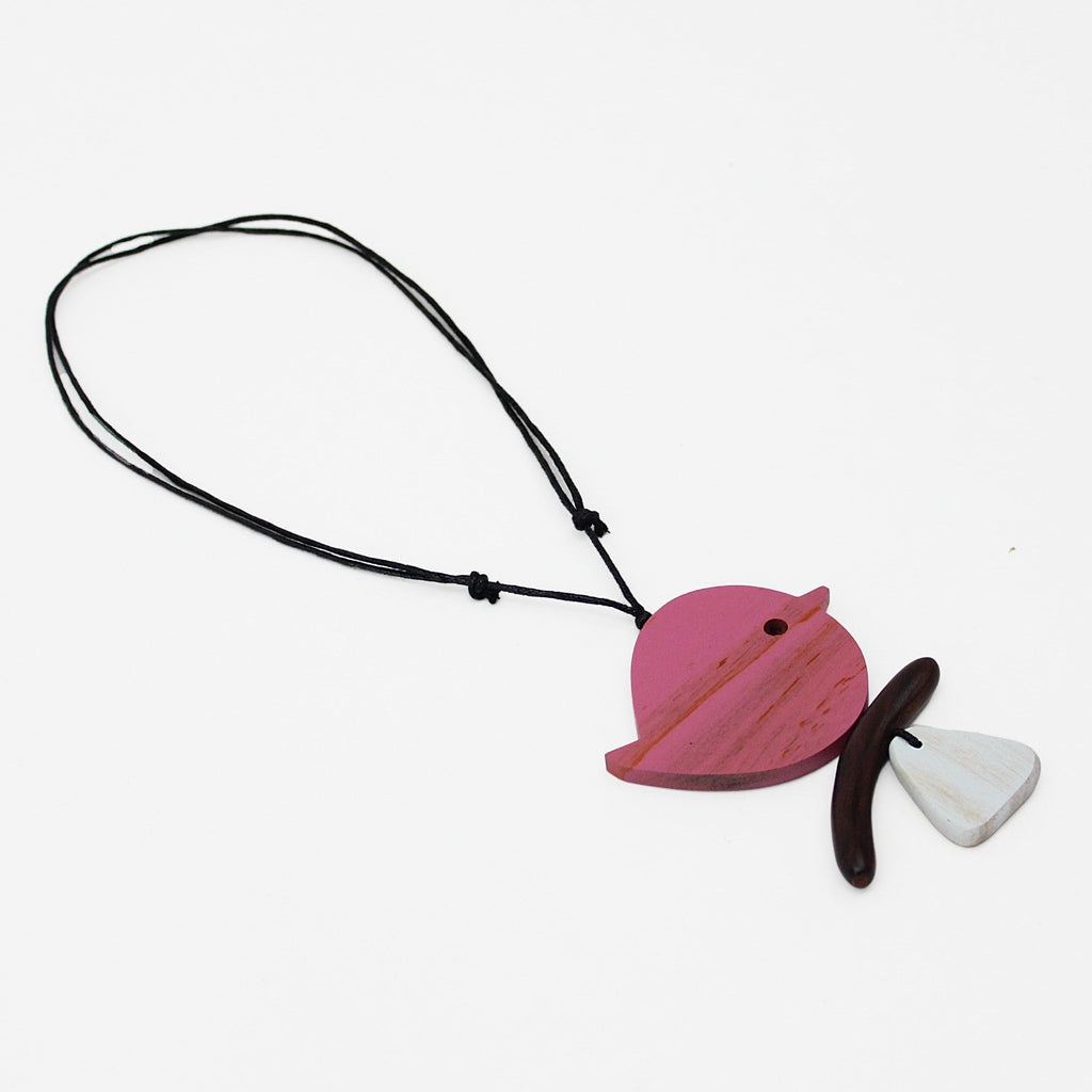 Everyones favorite robin is back in a cute new design! This wooden pendant necklace features a hand painted pink robin perched on a branch! The adjustable black wax cord allows you to choose the length you prefer. Layer over a blouse or a cute sweater.
