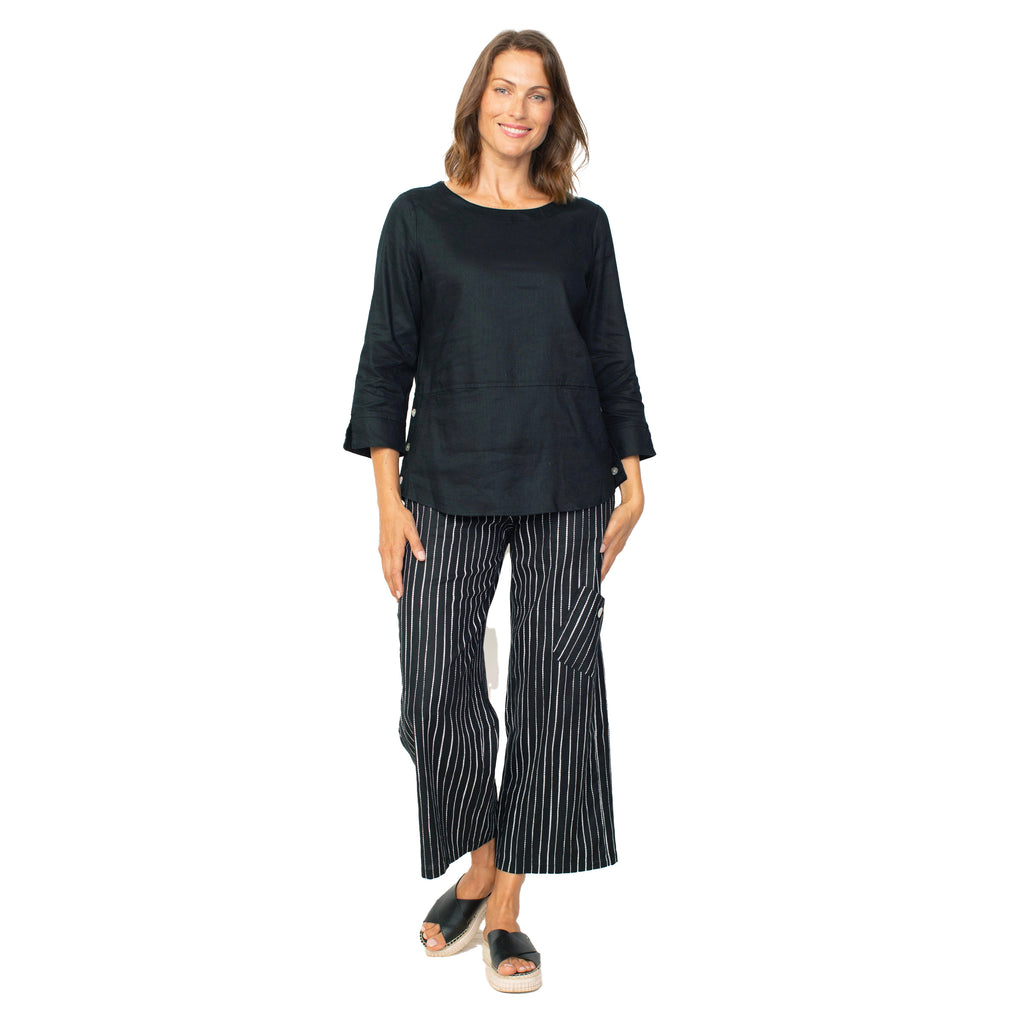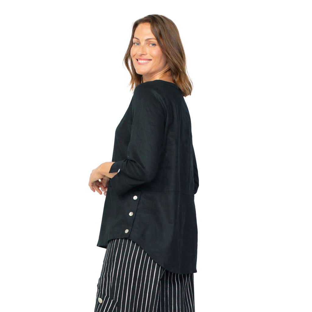 With a side button trim and a high-low hem, this solid linen round-neck tunic from Habitat can dress up any outfit for any occasion. The Linen and Cotton blend makes for a comfortable and breathable tunic.