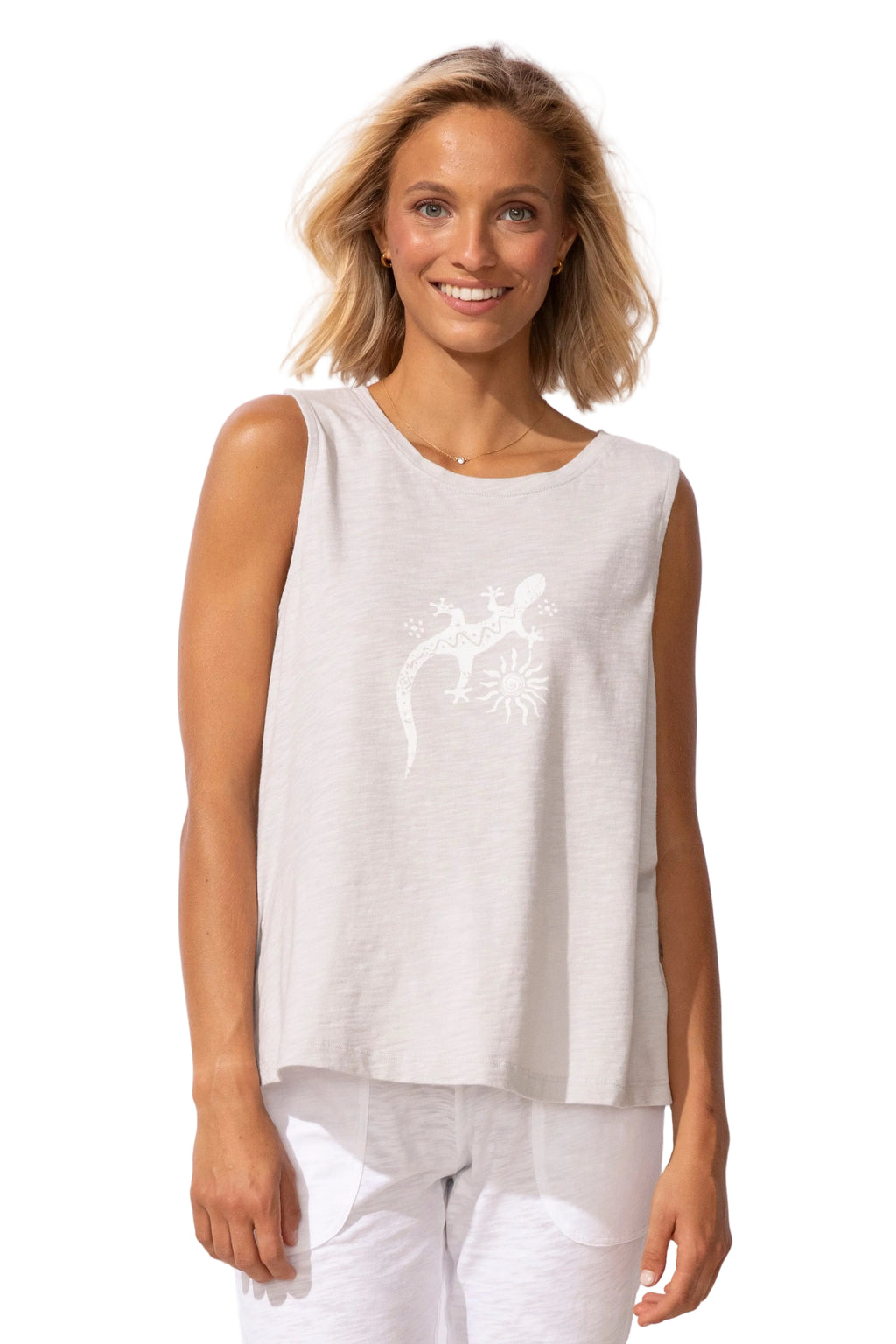 The Destination Gecko Crew Tank is a laid-back essential with a playful, destination-inspired touch. Designed in a classic tank silhouette, it features a round neckline and an easy, relaxed fit that’s perfect for warm days and casual layering.