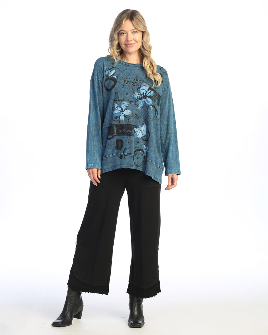 "Poppies" Mineral Washed Tunic Top w/ Slub Rib Contrast- M128-2044