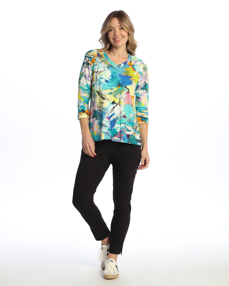"Kelly" Cotton Spandex V-Neck Top W/ Side Slits - KS1-2050