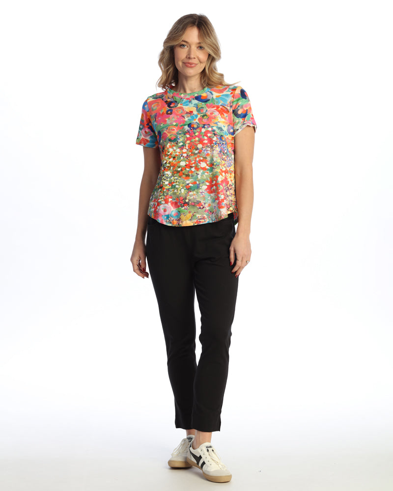 "Meadows" Cotton Spandex Round Neck Short Sleeve Top - KS2-2085- Limited Sizes!
