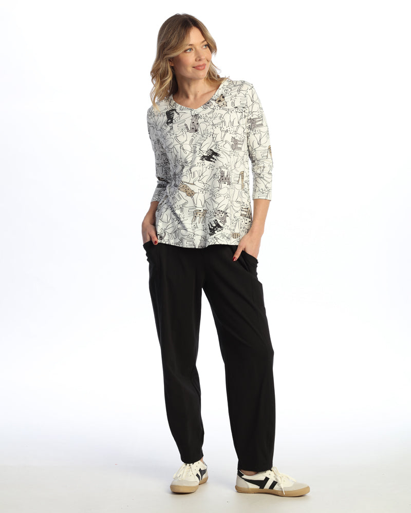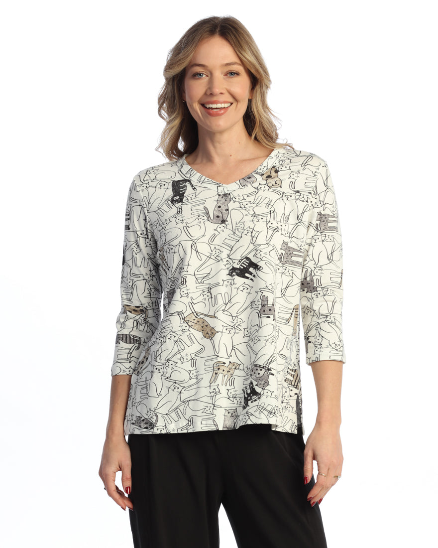 "Purrfect" Cotton Spandex V-Neck Top W/ Side Slits - KS1-2114