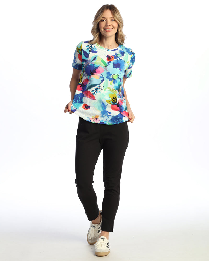 "Charlotte" Cotton Spandex Round Neck Short Sleeve Top - KS2-2059- Size 1X Only!