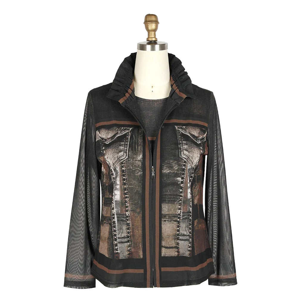 Smoky Denim Inspired Mesh Twin Set - 31431