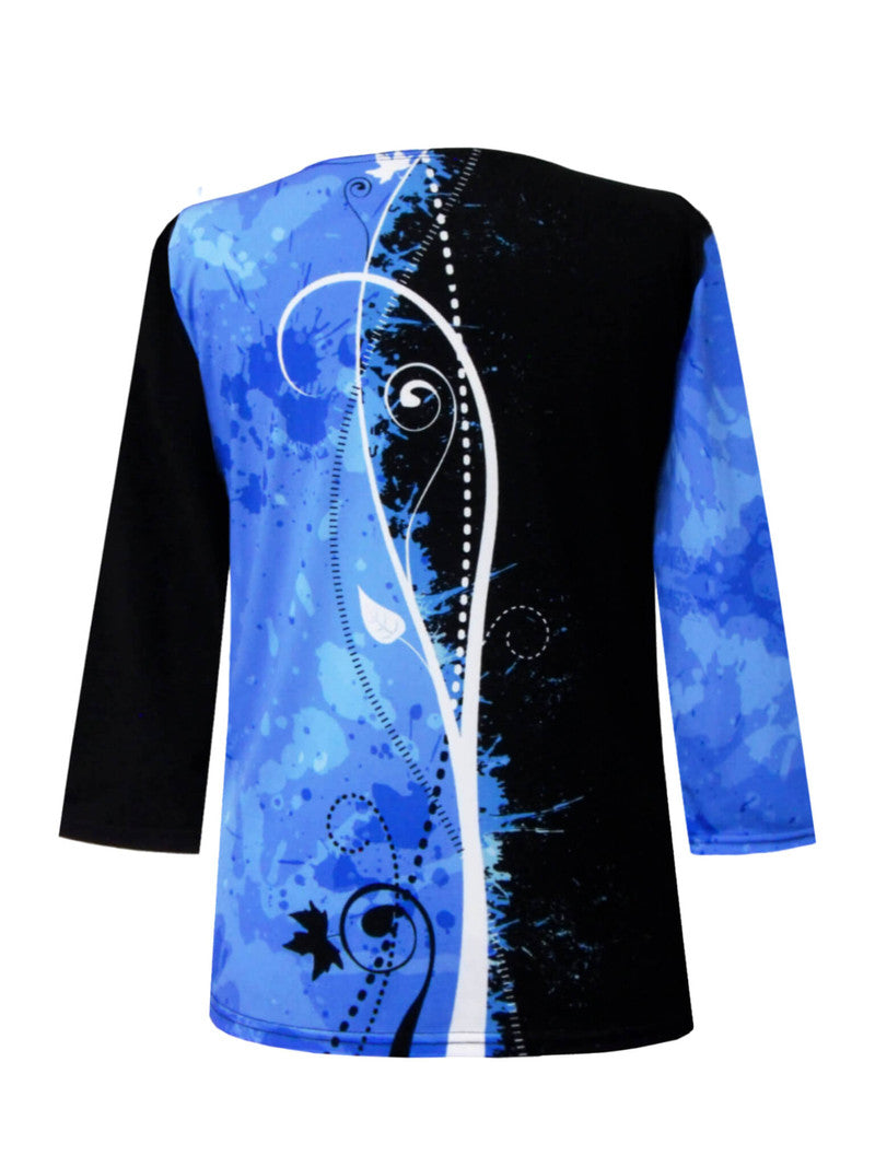 "Ascent" Royal Blue, Black & White Print V-Neck Top - 31294
