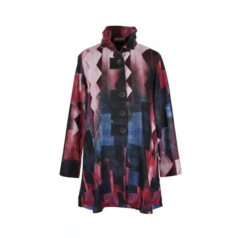 Zigzag Button Patch Coat in Wine/Multi - 5014-WN