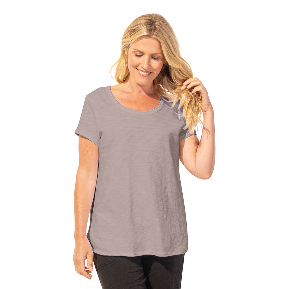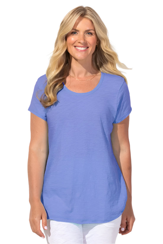 Introducing the Escape By Habitat Cotton Slub Scoop Neck Tee - your new go-to for comfort and style! pullover style, rounded neckline, and high/low rounded hemline.