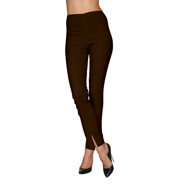 Mesmerize Pants with Front Ankle Slits and Front Zipper in Brown - MA21-BRN -